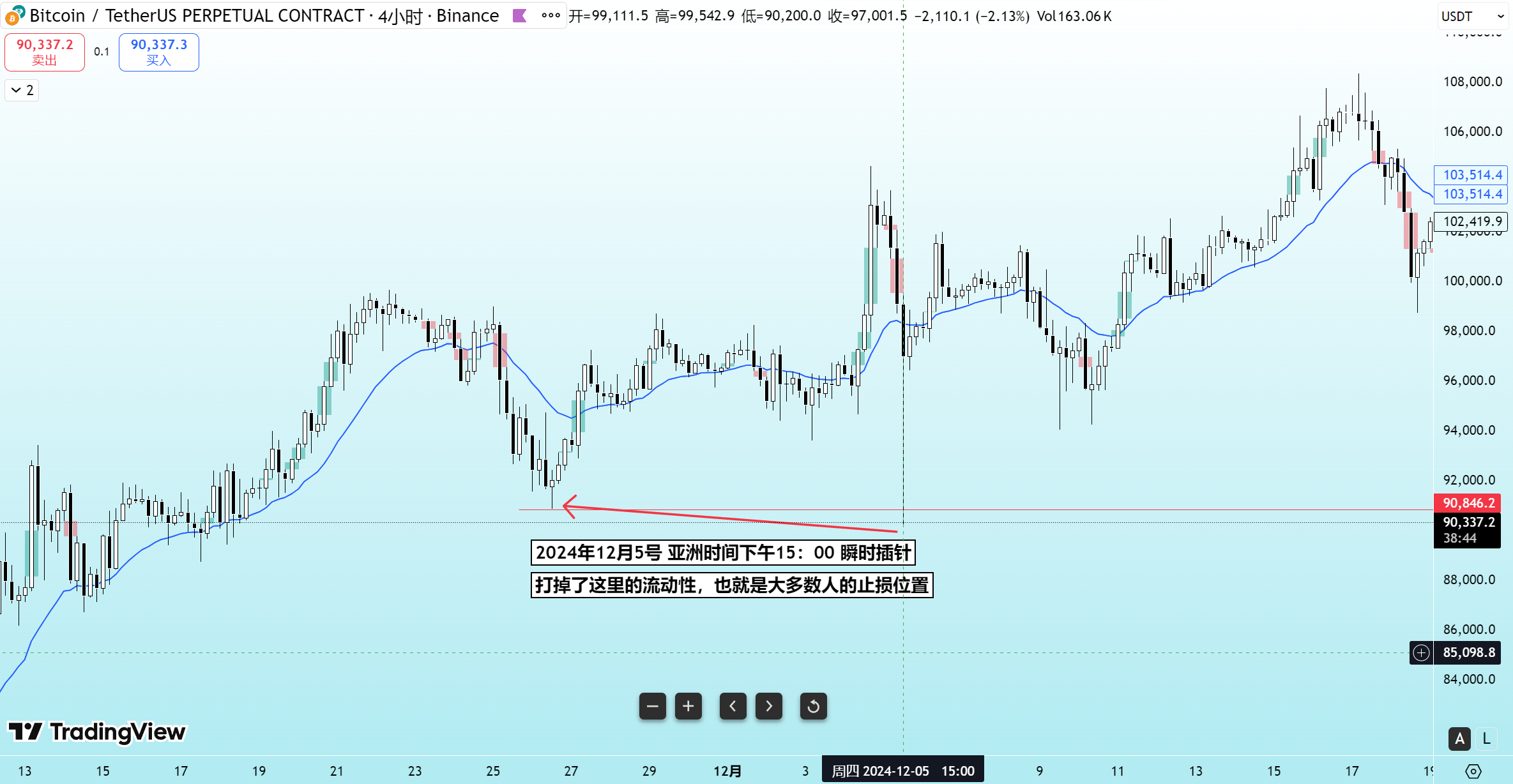 2024年12月5号亚洲时间15:00 BTC插针,获取流动性的行为!作者:DeltaMind