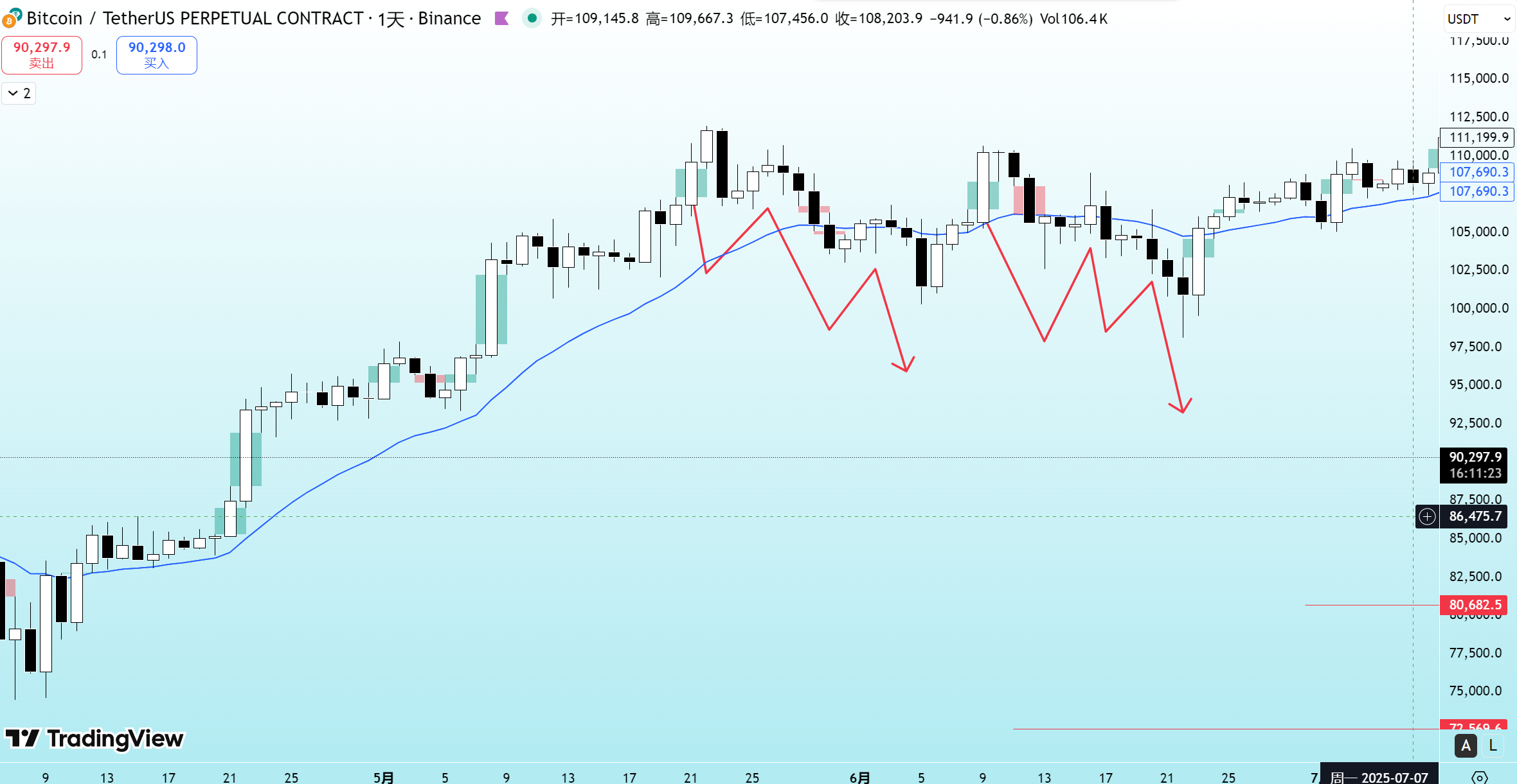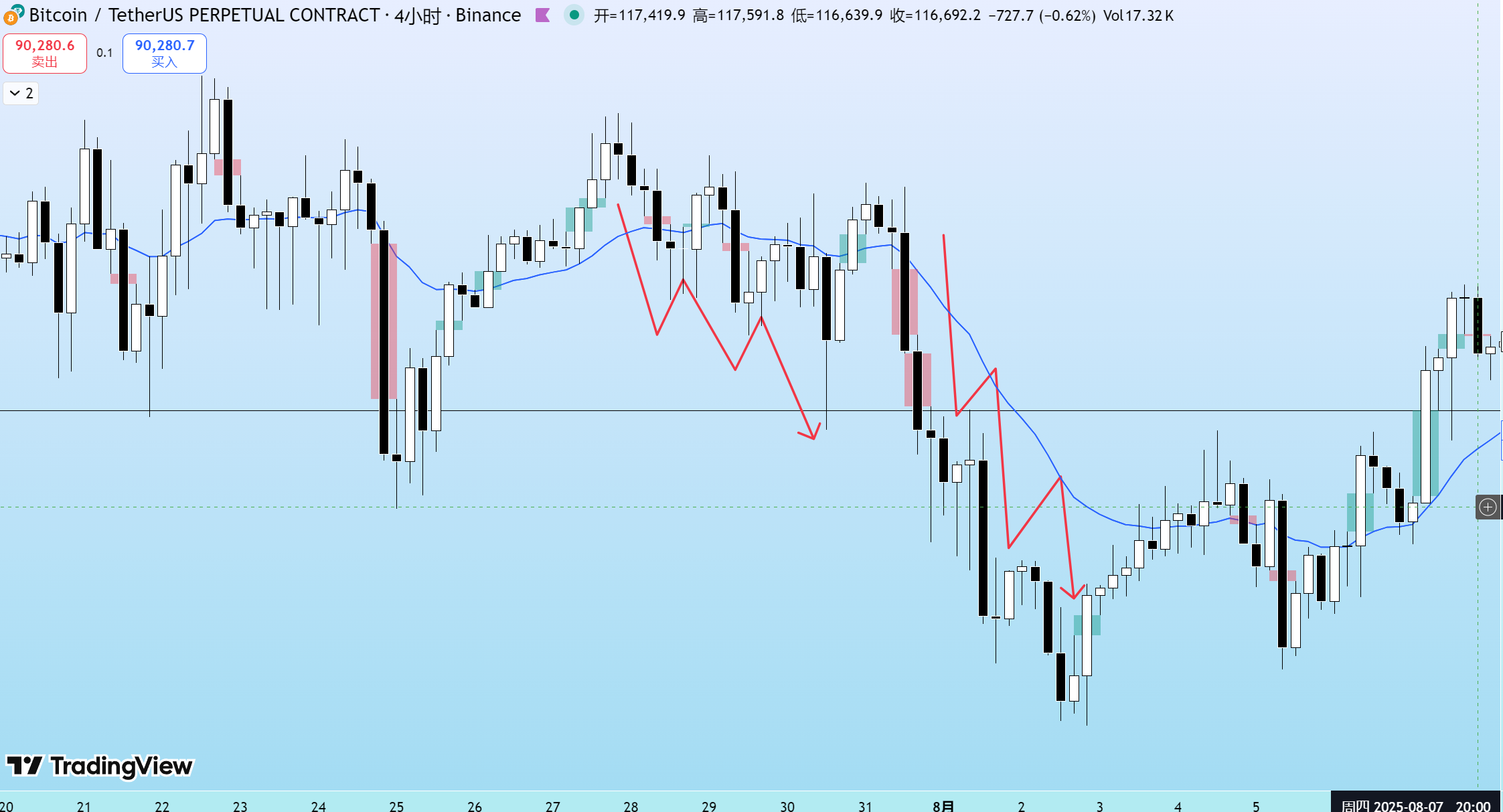 BTC成功率最高的模式!三段or三推下跌or上涨!作者:DeltaMind